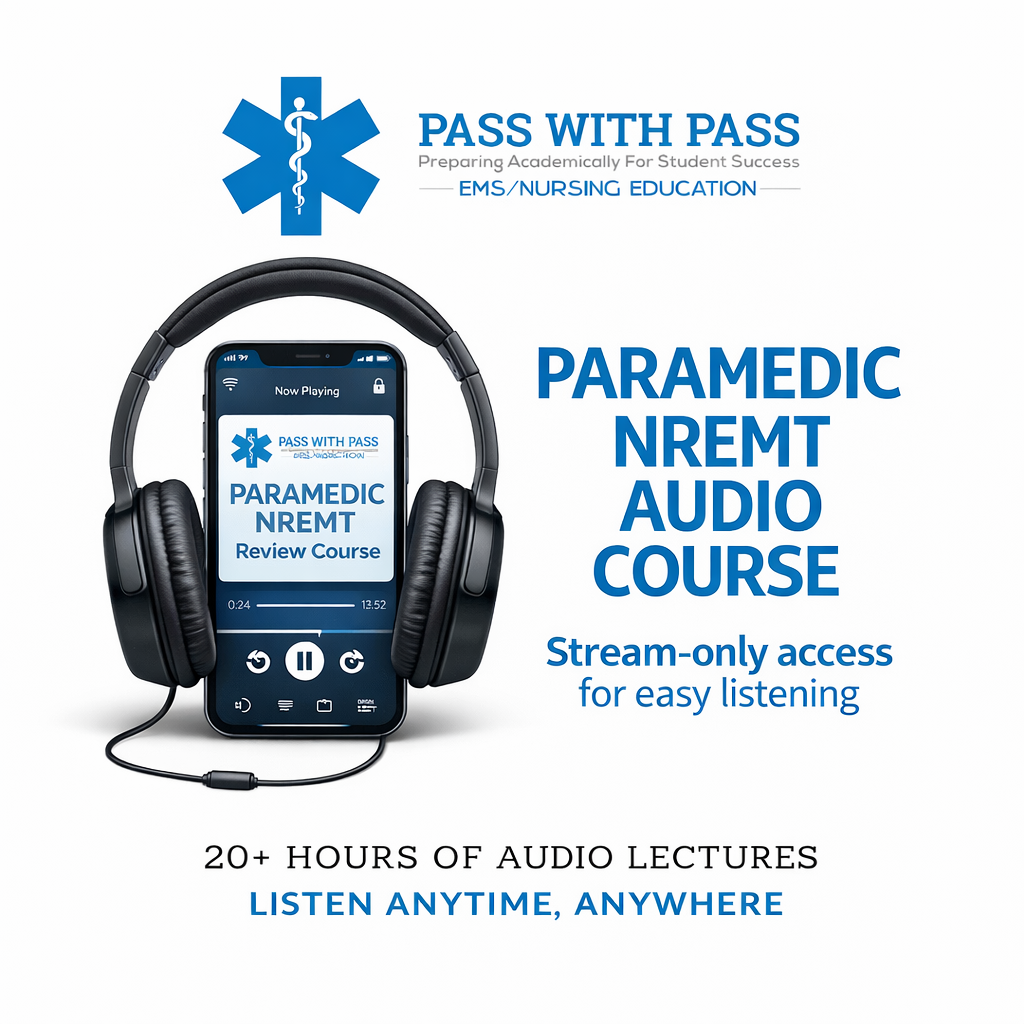 This is an audio-only Paramedic NREMT review course. It is designed for students who want to reinforce key concepts without sitting in front of a screen.